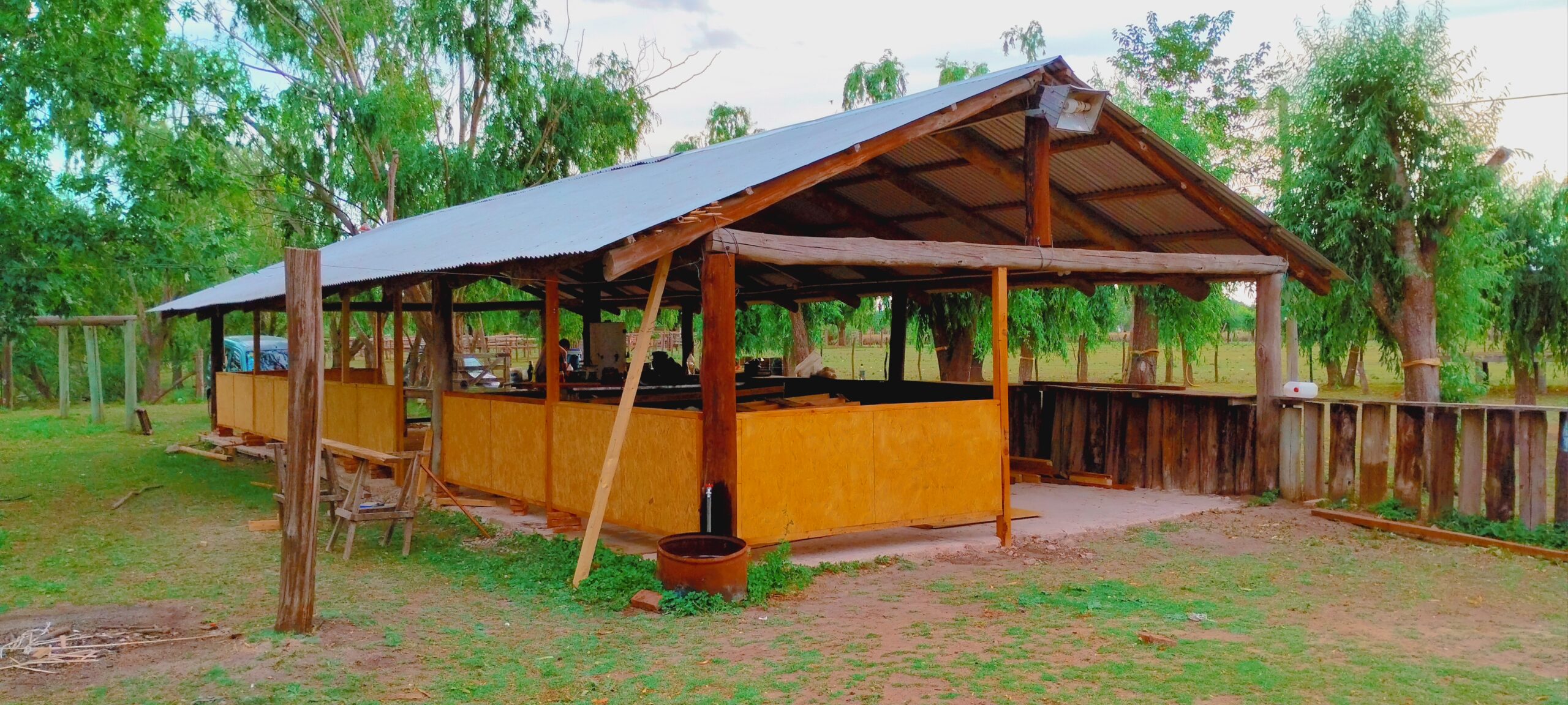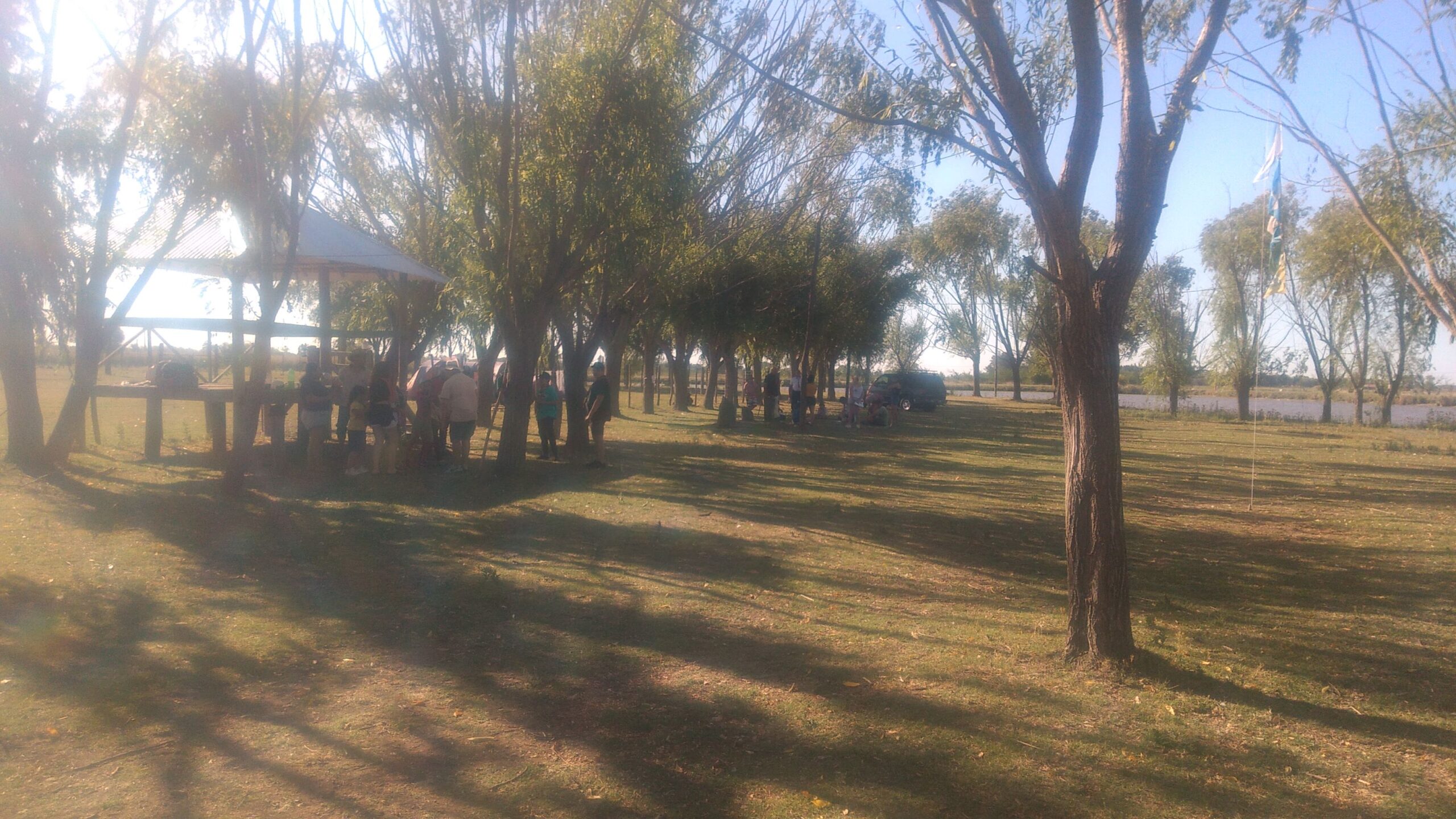 El campo de jineteada se sitúa en un entorno natural espectacular, rodeado por la laguna de Ranchos, lo que le da un aire especial. El lugar cuenta con un quincho equipado con mesas, sillas y una heladera para más de 80 personas. Sin embargo, es importante tener en cuenta que no dispone de anafes ni garrafas, por lo que te recomendamos llevar tu propia cocina portátil si pensás acampar.